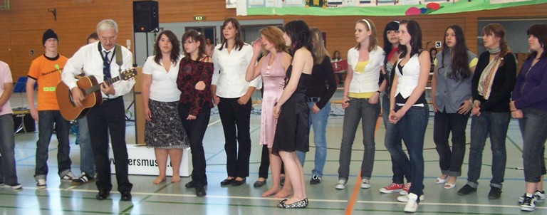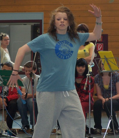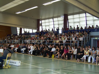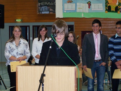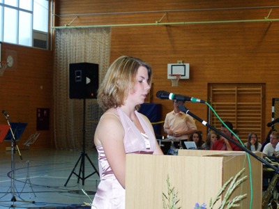 Publikum singt für Anne Lutz, die scheidende Schulsprecherin, Happy Birthday