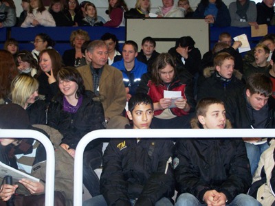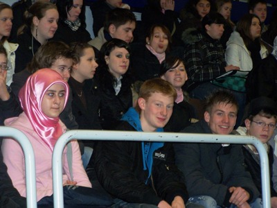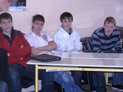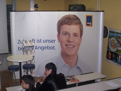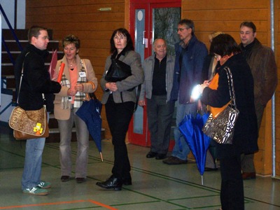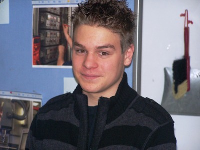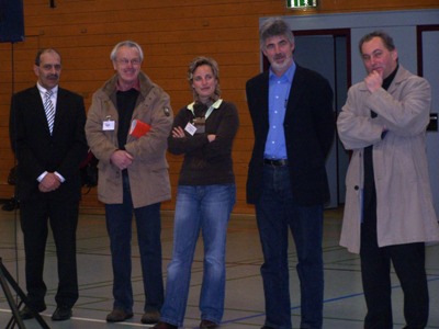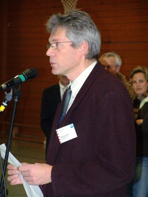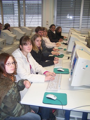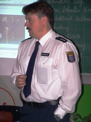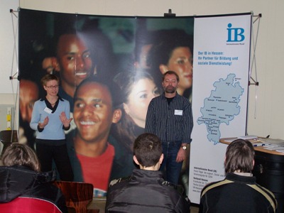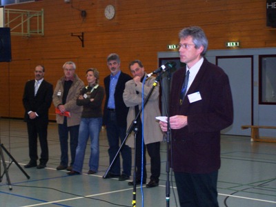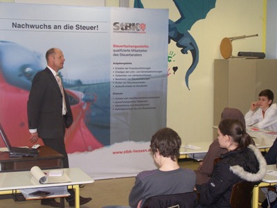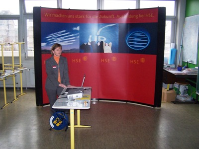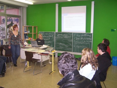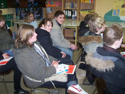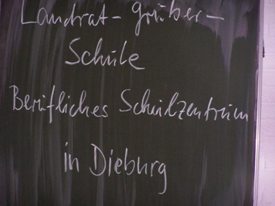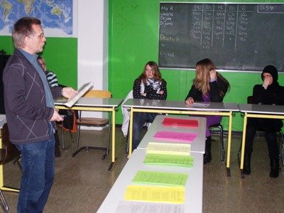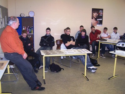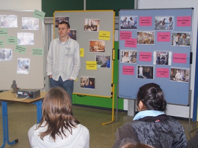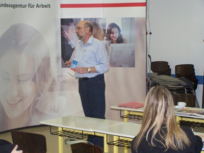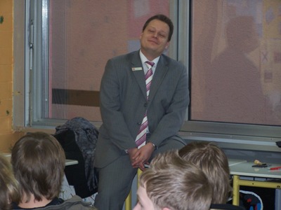 Er hielt eine Präsentation über seine Firma und besuchte seinen alten Klassenlehrer, Herrn Enders.