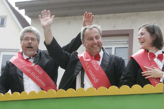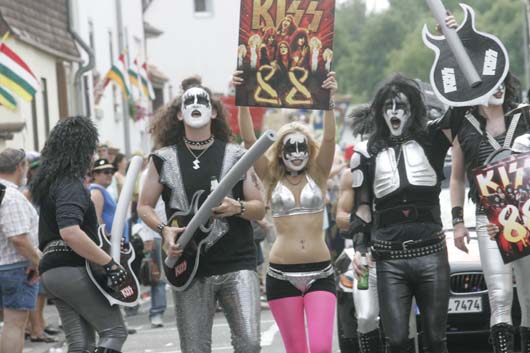 | Bürgermeister Ruppert übte schon einmal fürs Winzerfest. | Kiss und ihre Gitarren |