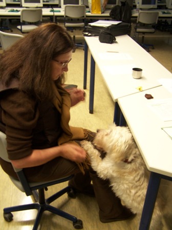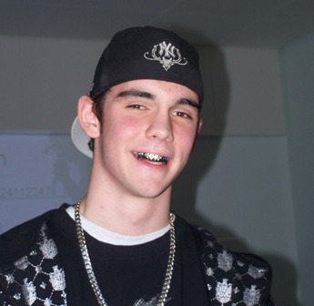 | Dennis zeigte seine Zähne und die Grillz. | Rudi, der Präsentationshund, fragte Frau Pommer: