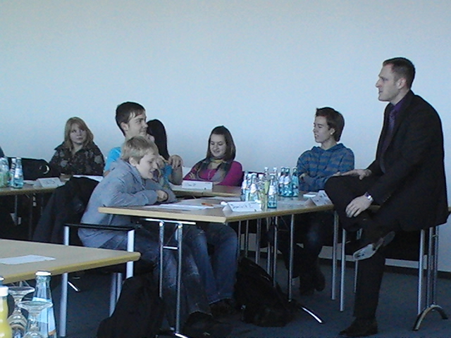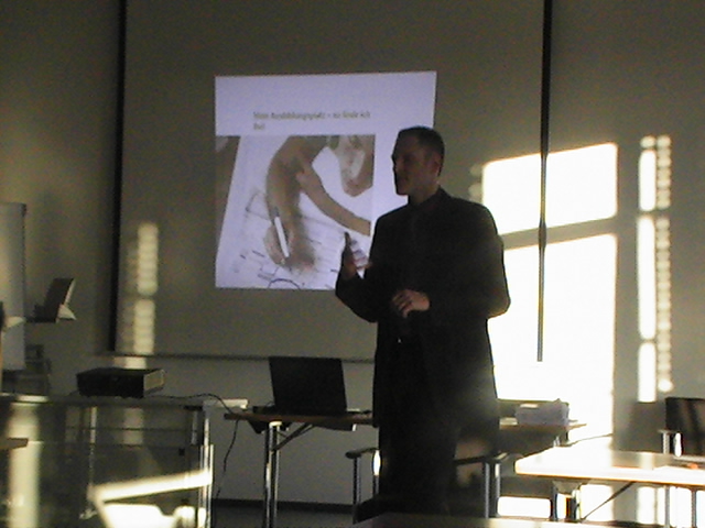 Herr Burger, Mitarbeiter der Barmer Krankenkasse, erklärte den Schülern der ERS den Ablauf eines Bewerbungsgespräches. Rollenspiele und Informationen zeigten die Realität und sollten motivieren.
