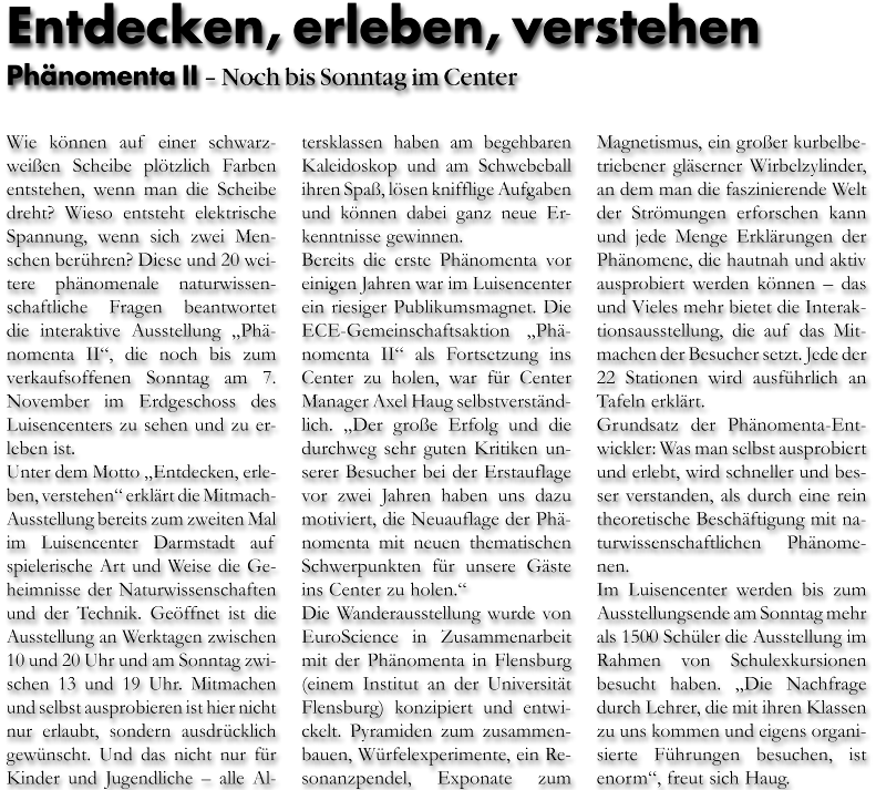 Schüler der ERS besuchen die Phänomenta im Luisencenter.